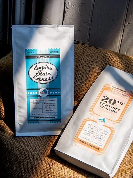 Streamliners Espresso Bar commemorated their third anniversary with a special release of six unique coffee blends, each named after historic streamliner trains that once graced the city's iconic train station. Eye Candy Design created visually stunning labels featuring a vintage matte finish and die-cut train ticket shape that married two compelling themes: the local railway heritage and the journey of coffee from Nicaragua to Ontario. The labels became a major driver of the anniversary release's success.